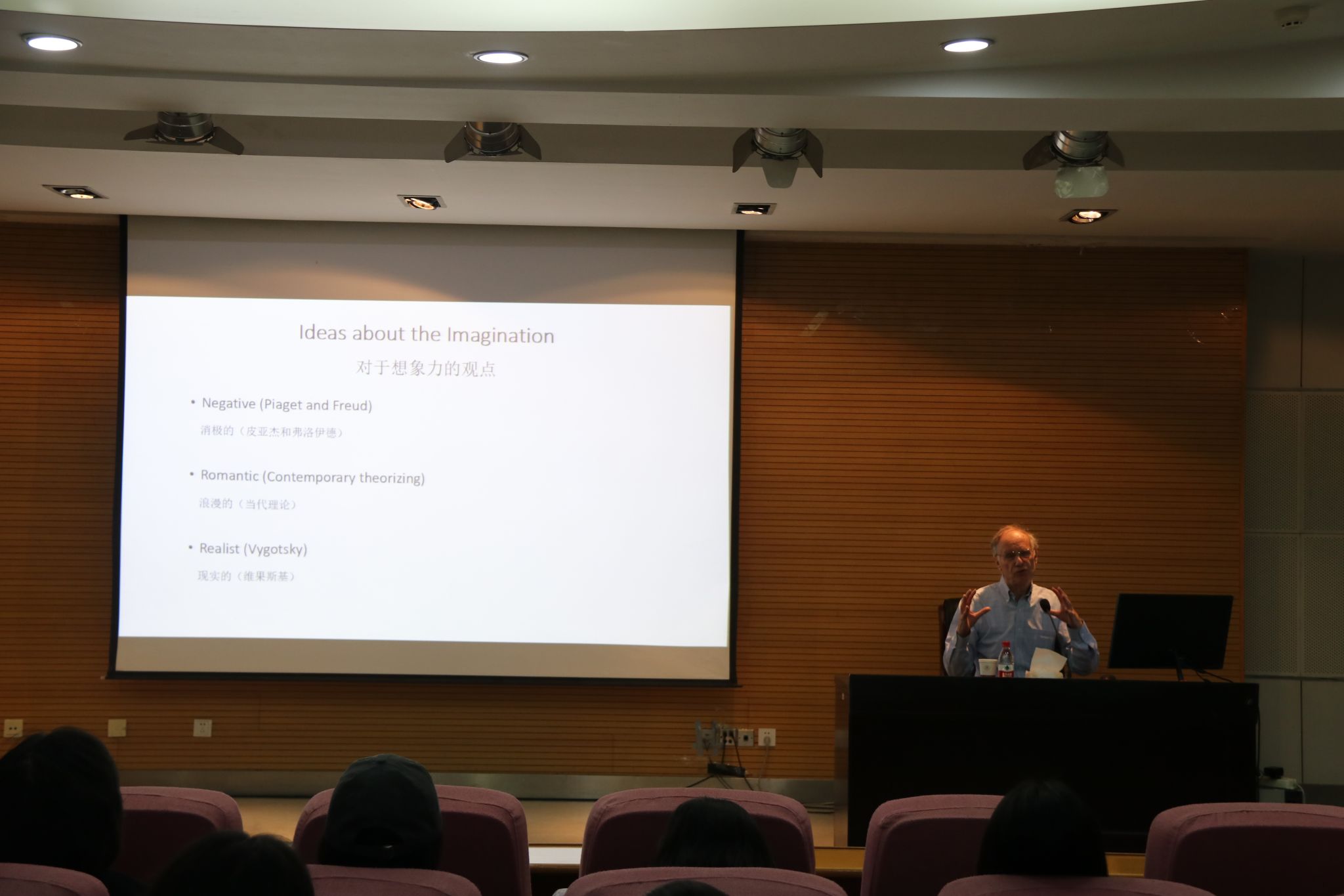 在本次讲座中,Paul Harris教授从当前心理学界对于想象力的观点导入,重点介绍了现实主义视角的幼儿想象力的特征,包括早期假装游戏、想象未来、判断可能性、创新与工具制造、画出不存在的东西等五个部分,分别从多个已有的严谨又不失趣味的实验研究出发,得出了幼儿早期的假装游戏中与现实知识相关,幼儿对于未来的想象与过去的记忆密切相关,判断可能性由于儿童的想象力有限从而容易出错且保守,幼儿的创新与工具制造能力除非受到提示,否则在幼儿中很罕见,以及在被要求画出不存在的东西时除非受到提示,否则在幼儿中也很罕见等五个结论。最后用“幼儿或许不是资深的原创者,但他们是有创造力的‘抄袭者’”对幼儿的想象力特征进行了总结。