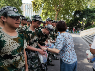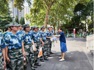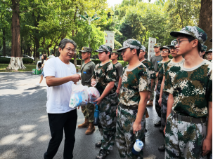 随后,老师们代表公司为连队教官和同学们送上慰问品,并叮嘱同学们近期天气高温炎热,要做好降温防暑保护措施。
